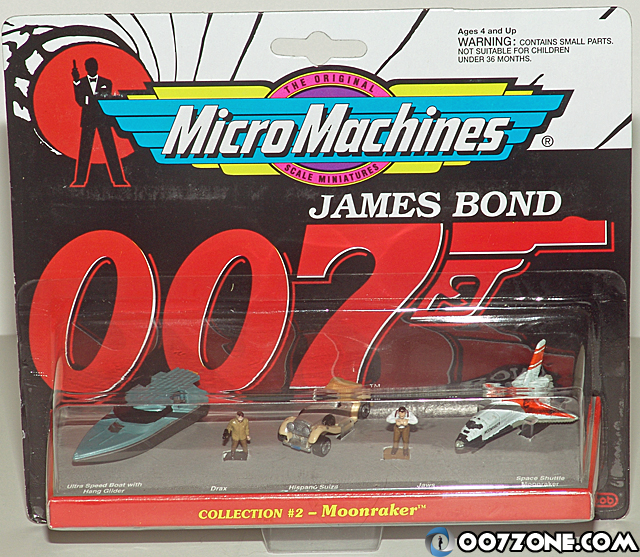 3편의 영화를 한데 모은 박스세트엔 제임스 본드(숀 코네리), 제임스 본드(로저 무어), 골드핑거, 죠스, 아냐 아마소바, 드랙스 미니 피겨린과 아스톤 마틴 DB5, 로터스 에스프리, 벨 헬리콥터, 미사일 달린 모터싸이클, 1937년 롤스 로이스 팬텀, 파이퍼 스턴트 비행기, 히스파노 스위자, 스페이스 셔틀, 울트라 스피드 보트가 들어있다.