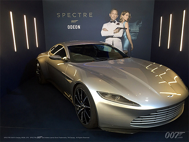 ’007 스펙터(SPECTRE)’에 등장한 럭져리 스포츠카, 아스톤 마틴 DB10(Aston Martin DB10)이 영국 런던의 오데온 시네마(Odeon Cinema)에 전시된다.