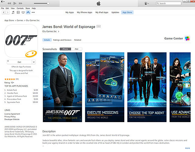 전략 게임 ‘제임스 본드: 월드 오브 에스피오나지’는 애플의 아이튠스 스토어와 구글 플러스에서 무료로 다운로드 받을 수 있다.