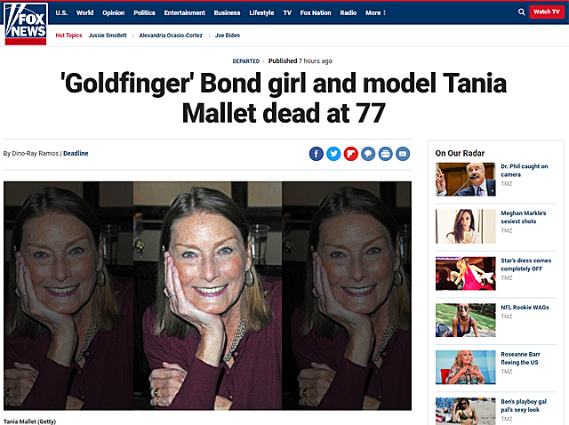 프랑스 여배우, 클로딘 오제(Claudine Auger)가 사망했다고 미국 폭스뉴스가 보도했다.